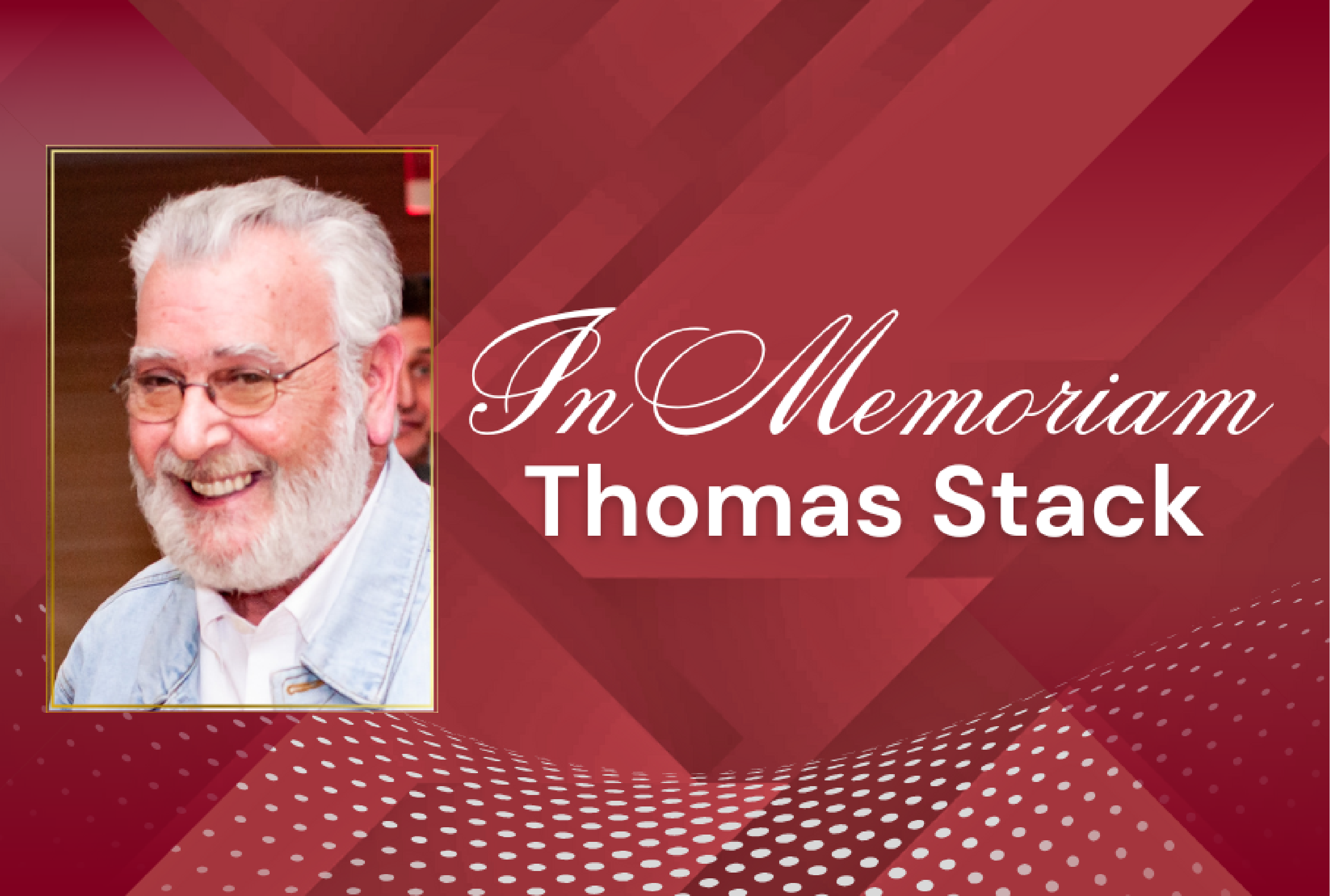 Tom is survived by his beloved wife of 44 years, Deborah (nee McCann); loving daughter, Kimberly Stack & her husband, Steven; sister and brothers, Kathleen Viaud (Hughes), John Stack, Jr. (Carol), and Robert Stack (Linda); Buddy, his furever friend; his “grand” animals, Daisy and Gracie, Ophelia and Kitty; his nieces and nephews and countless friends.