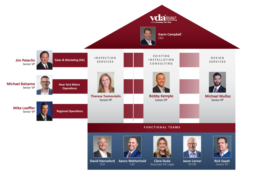 VDA’s Gavin Campbell announced the organizational change to employees on July 1: “These are exciting times for VDA and all the companies who have joined our team over the last two years. As VDA continues to grow, our presence in the vertical transportation consulting and inspection industry requires us to have the optimal structure in place to support our strategy. We have now scaled the business to the point where we need to concentrate our strategies within three business units (verticals) to accelerate our growth going forward.